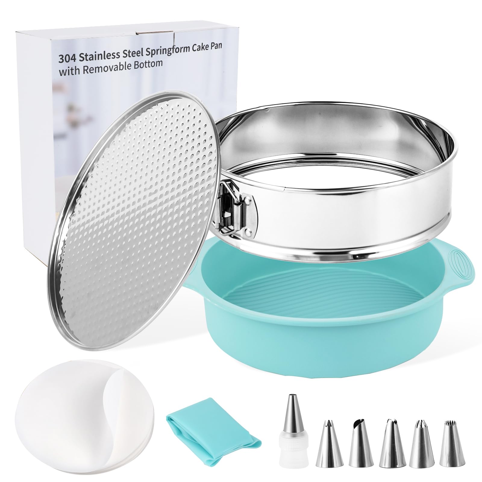 I am absolutely thrilled with the Spmarkt 10-inch Stainless Steel Springform Pan! This set has everything you need to create beautiful cakes for birthday parties, special occasions, or just for fun. Here's what makes it stand out:Key FeaturesPremium Stainless Steel ConstructionThe stainless steel material is strong, durable, and resists rust, making this pan a great long-term investment. It feels sturdy and high-quality, ensuring your cakes will come out perfectly every time.Removable BottomThe removable bottom is a game-changer! It allows you to easily release your cakes without damaging them. It’s especially helpful when making delicate or layered cakes. No more struggling to get your cakes out of the pan!Silicone ProtectorThe silicone protector around the base helps prevent leaks, so your batter stays safely inside the pan while baking. It’s an added bonus for anyone who loves to experiment with cake recipes and wants to ensure a mess-free baking experience.Parchment Paper IncludedThe parchment paper is a fantastic addition. It helps prevent sticking and makes cleanup a breeze, especially when you’re baking cakes with tricky ingredients like fruit or caramel.Decorating Kit IncludedThis set goes the extra mile with a decorating kit that includes piping bags and tips. Whether you're a beginner or a seasoned baker, these tools allow you to decorate your cakes beautifully and professionally. It’s perfect for birthday parties and other celebrations!Why I Recommend ItThe Spmarkt 10-inch Springform Pan Set is ideal for anyone who loves to bake cakes and wants an easy, high-quality experience. It’s perfect for birthdays, celebrations, or just making a treat for yourself. The included decorating tools and parchment paper make it easy to get creative with your cake decorating, while the durable construction ensures this pan will be a staple in your kitchen for years. Highly recommend this set for anyone looking to bake cakes with ease and style!